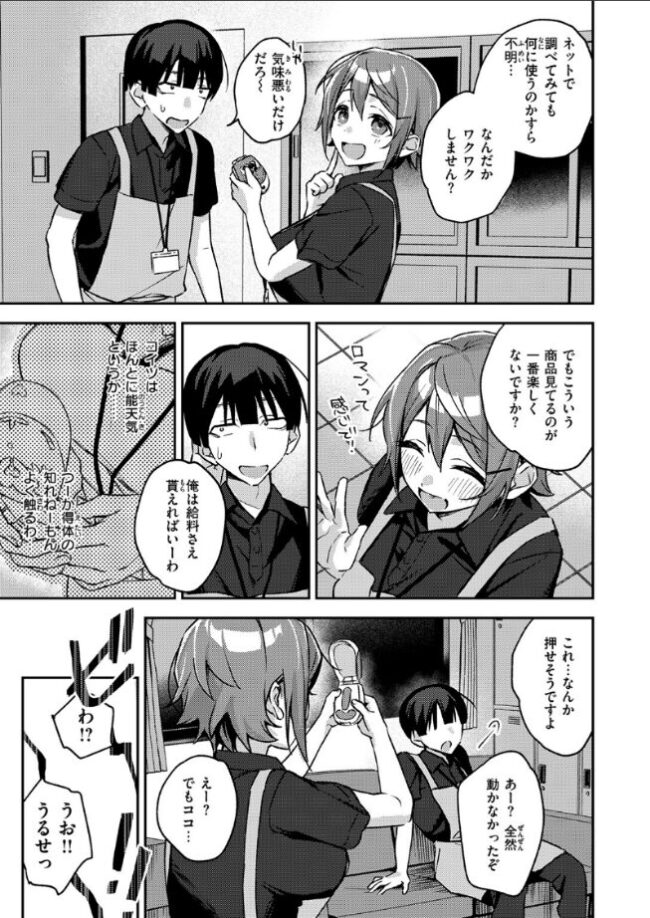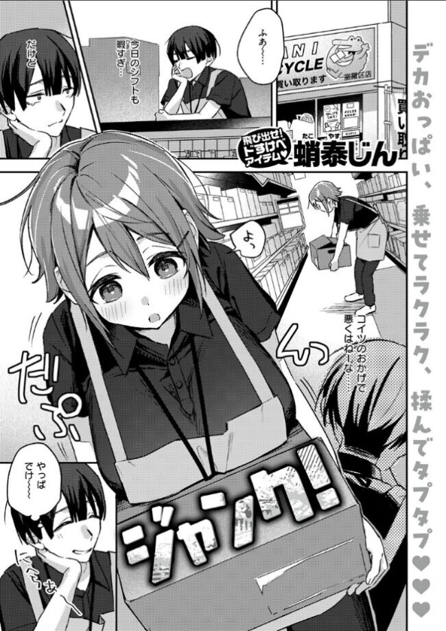 リサイクルショップでバイト中、後輩で同僚の巨乳ちゃんに見とれていると、謎のおじさんに得体のしれないオモチャをもらってしまう。怪しむ自分とは違って、興味津々な後輩。どうやらこのおもちゃ、ボタンを押すと《時間が止まる》らしい!?先に押してしまった後輩のおっぱいを揉んで埋もれて、ぶっかけまで堪能。ボタンについた精液を拭こうとしたら今度は自分が時間を止めてしまって――初登場・蛸泰じん、乳魂(にゅうこん)のデビュー作!!!