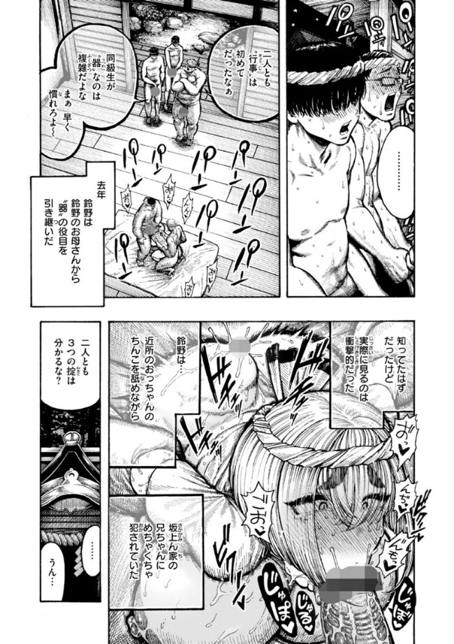 前の席の鈴野(すずの)ゆかは――この村の《器》だ。この山村の因習のため、目の前で村の男たちに次々と穢され続けるクラスメイトの鈴野。近所のおっちゃんのチンコを舐め、友達の兄ちゃんにめちゃくちゃに中出しされ――いよいよ俺に順番が回ってくると、鈴野はなんの躊躇もなくチンコを舐め回してきた……※単行本『熱帯夜』収録作品