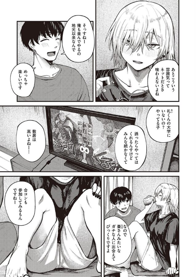 雨に濡れてしまった棗(なつめ)さんがお風呂から上がった後、二人で格ゲーをした。気づけば深夜。棗さんは言った──。「そういえば今日ってエッチすんの?」隣の部屋に聞かれているかもしれないような声をあげて、僕らは互いを求めあった──。愛と叙情の戦士・オオサキ先生 初参戦!! カップルが過ごす、だらだらしっとり交尾の時間♪