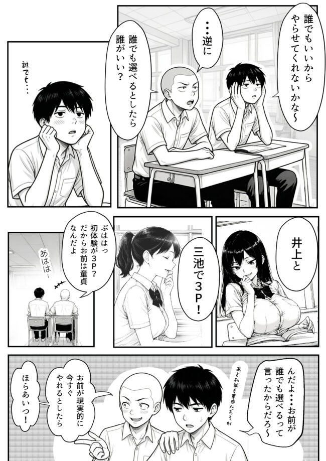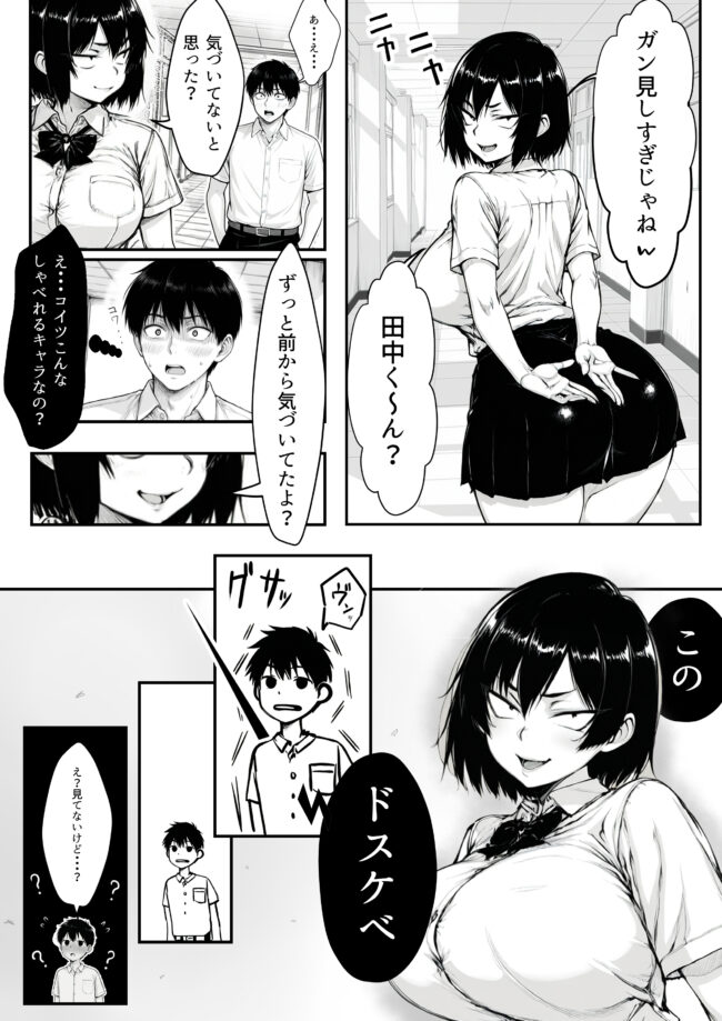 学校には美人ばかりいてもう誰でもいいなあと、つぶやいていると、隣の友人がお前がヤレそうなのはアイツじゃんと指をさす。