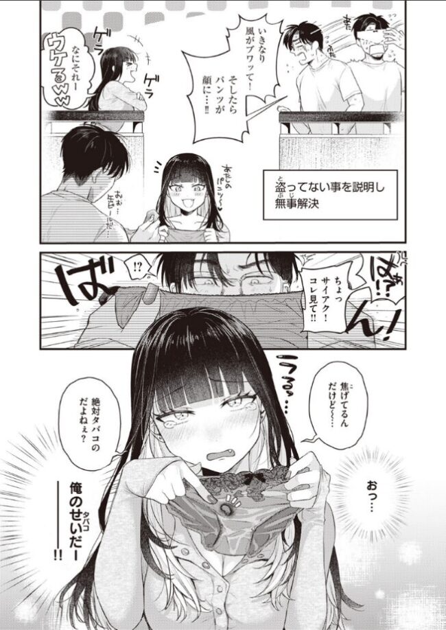 「ソレあたしのパンツ! 返してもらえますか〜?」ベランダで一服していたらエロいパンティーが飛んできた!? それは新しく引っ越してきたお隣さんのもので……。グイグイ距離を詰めてくる陽キャのギャル×冴えないオジサン! 失恋をきっかけに二人は濃厚な慰め愛へ♪