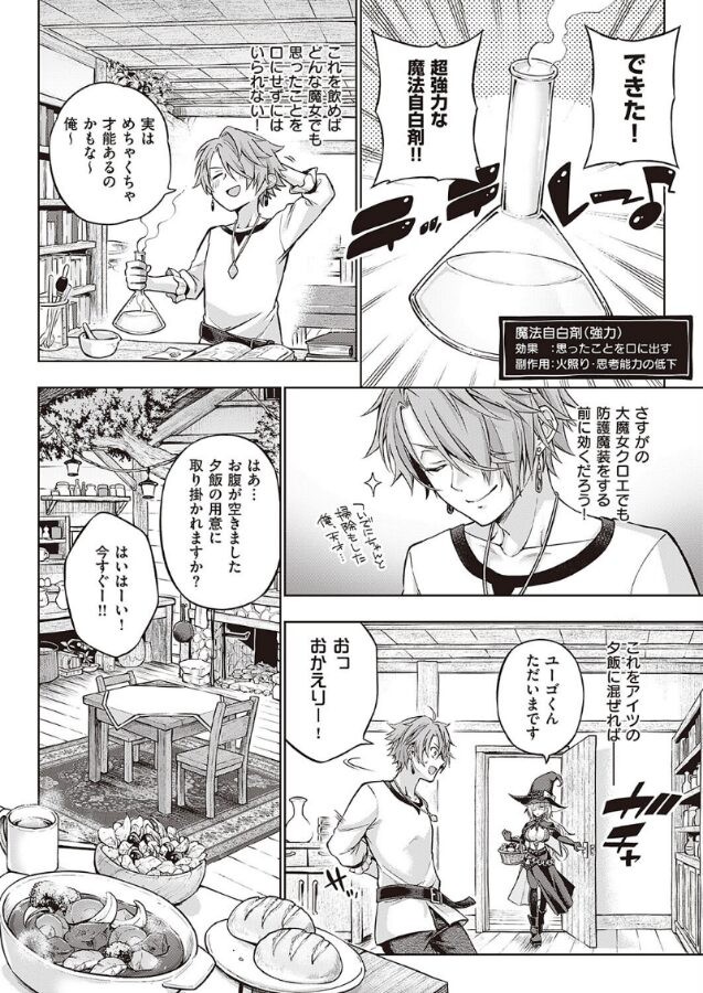 孤児の俺を育ててくれた巨乳魔女のクロエ。なぜ親切にしてくれるのか疑問に思った俺は、彼女の気持ちを知るため、自白剤をこっそり投与することに。薬の効果でしっかりと自白してしまったクロエは、恥ずかしくなったようで仕返しとして俺の局部を舐めだして!?超大型新人・メツブシ先生贈る、クールな巨乳美人魔女は弟子に自白薬を盛られて…秘めたアツーイ想いをマジ告白!?