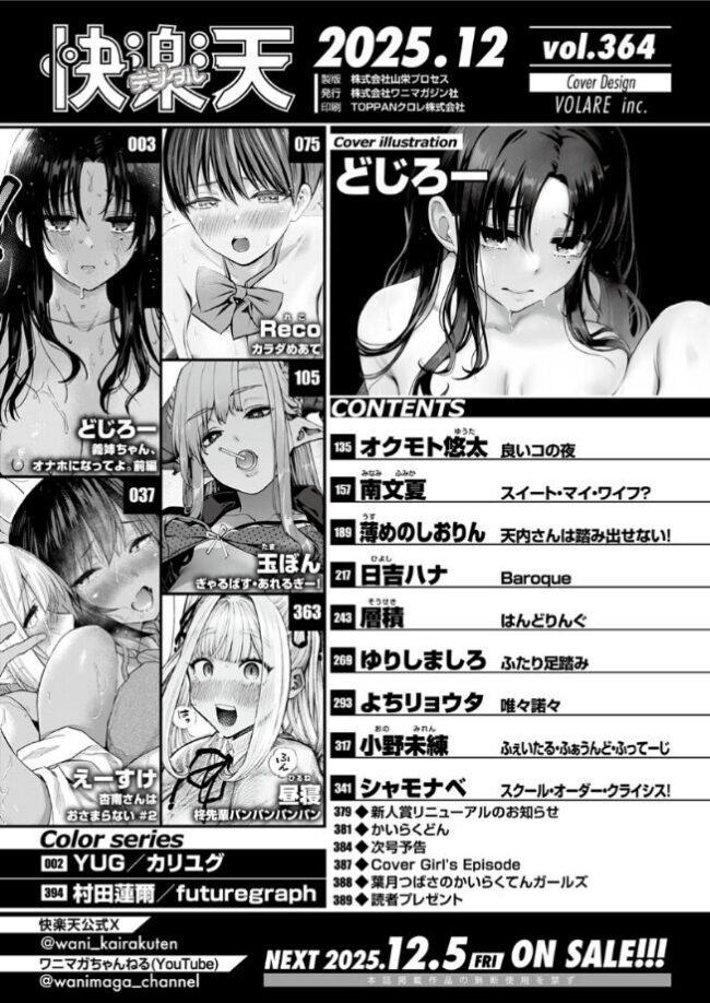 - 作家:どじろー,YUG,えーすけ,Reco,村田蓮爾,日吉ハナ,オクモト悠太,昼寝,南文夏,シャモナベ,層積,玉ぼん,小野未練,ゆりしましろ,よちリョウタ,薄めのしおりん