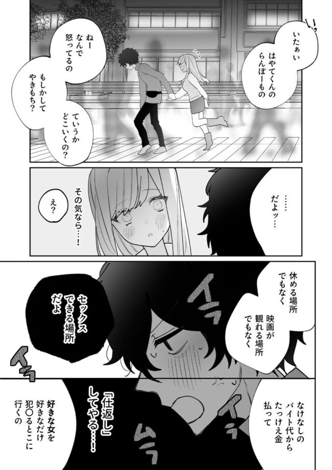 今日のオフ会のメンバーは前回カラオケボックスでSEXをした女の子・りこちゃん、俺、他2人。俺はりこちゃんとの行為を思い出して落ち着かない中、彼女はいつも通りの様子。そんなりこちゃんを見て、俺は嫉妬やイライラ、そして性欲が募っていく。オフ会後、俺とりこちゃんが二人きりになった流れで彼女の手を掴み──