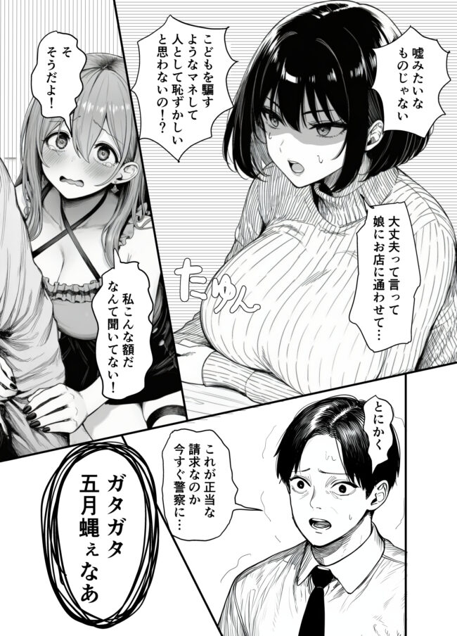 ホストにお金を注ぎ込んでしまった娘の尻拭いを母親がすることになるエロ漫画です。