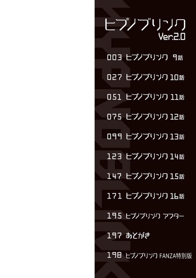 「これが俺の最終目標だ!」美乳作家、逆又練物が贈る大好評シリーズ、第2弾にして完結編!己が肉体を売り物にする『ビッチJK』、妊娠を望む『完熟人妻』そして『処女』を貫かれた『女子大生の梓』が!魔羅人(まじん)斎藤の夢『ハーレム』、ついに完成か!?【ヒブノブリンク 9話】【ヒブノブリンク 10話】【ヒブノブリンク 11話】【ヒブノブリンク 12話】【ヒブノブリンク 13話】【ヒブノブリンク 14話】【ヒブノブリンク 15話】【ヒブノブリンク 16話】【ヒブノブリンク アフター】単行本のための描きおろしを含む全9作品収録。さらに『FANZA特別版』のみ掲載の、『ヒプノブリンク Ver.1.0』から『ヒプノブリンク Ver.2.0』をつなぐ【ヒブノブリンク 8.8話】キャラクター設定画と描きおろしマンガを特別収録。