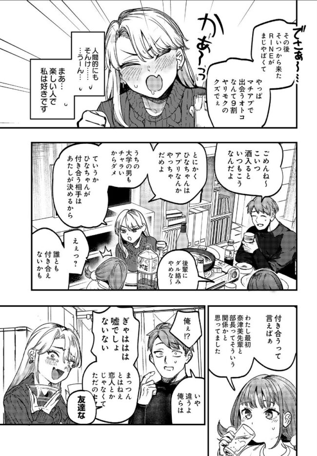 大学の先輩に一目惚れしダンスサークルNUTSに入部したひな、なかでも先輩の奈津美、部長の松山に可愛がってもらっていた。ある日サークルメンバーで鍋パをしていたひな、酔いが回り寝落ちてしまい、目を覚ますと…