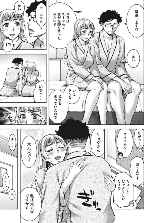 【はじめは愛する人のためのはずだった】 主婦友達のヨーコからスワッピングを提案されたココロ。スワッピングをすると元の夫婦が盛り上がると誘われ、やってみることにした。ヨーコの夫は、緊張で体が強張っているココロに目隠しプレイを提案してくる。ホテルの隣室の、ヨーコと自分の夫がセックスをする音も聞こえるほど聴覚が研ぎ澄まされ、肉体も敏感になって感じてくるココロ…。(愛情交姦) ――様々な理由を抱えた人妻が、その愛の形を変えていく…女の不貞を描いた作品を中心とした作者渾身の11作品を収録。 愛に溺れ、欲に溺れ、オンナはより輝きを増す。 <収録作品>愛情交姦 前後編・愛情編/マネージメント/のぞきみ/おさがり妻/ワケあり人妻生配信/デリヘル呼んだら近所の奥さんだった件について/男子のたしなみ/女子のたしなみ/幼馴染