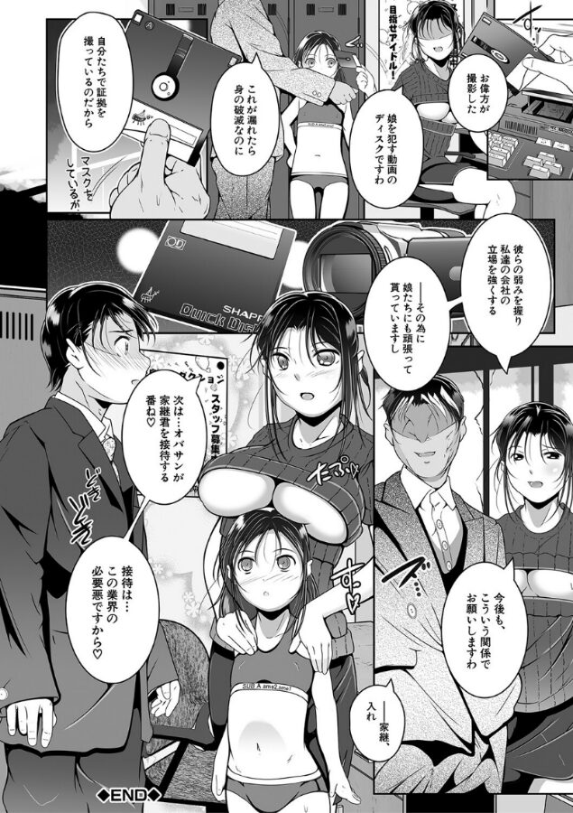 【1話試し読み付き】ちびっ娘穴の奥に射精して!娘のオマ〇コとアナルを使って下さいね▼弱小アイドルプロダクションでは、接待は必要悪!娘三人をお偉方の接待に使って弱みを握るのよ▼天使のような娘三人が、ゴックンさせられたりアナル好きのオヤジ達に開発されたり、人には言えない背徳の趣味に供えさせられる。カバーイラスト複製原画を始め、FANZA限定特典として収録作『まかない料理は母娘丼』の下書きやプロットを限定収録!【収録作品】母娘は孫請けアイドルプロダクション〈前後編〉●●●配信中まかない料理は母娘丼姪っ子は寝ている母は女将、娘は仲居の温泉宿あとがき【配信特典】・未公開!カバーイラスト複製原画・未公開!カバーイラストラフ【FANZA限定特典】・収録作『まかない料理は母娘丼』下書き[全ページ収録]・『まかない料理は母娘丼』キャラデザイン付きプロット
