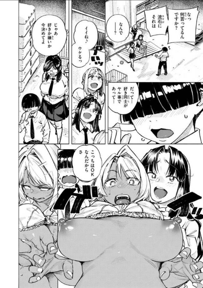 いつもの買い出しパシリの命令で《彼女たち》に呼び出されたと思ったら、見覚えのない下着姿の黒ギャルがいた――「今からさ コイツとセックスしてみせてよ」そんな無茶ブリをされてしまった。当然僕は断る。だってソレは…好き同士でヤルことであって……。でもそんな主張が通るハズもなく、強要されるままセックスする流れに。「こうなった以上、初めて同士なら相手のこともイイ気持ちにさせたい」だから僕はしっかり挨拶をして、彼女の名前も聞いて……今日のことを忘れないようにしたいと思ったんだ……!!パシリ男子・ハチコーの異常性が浮き彫りになるにつれ、周りの女子たちの様子もおかしくなっていき……!?