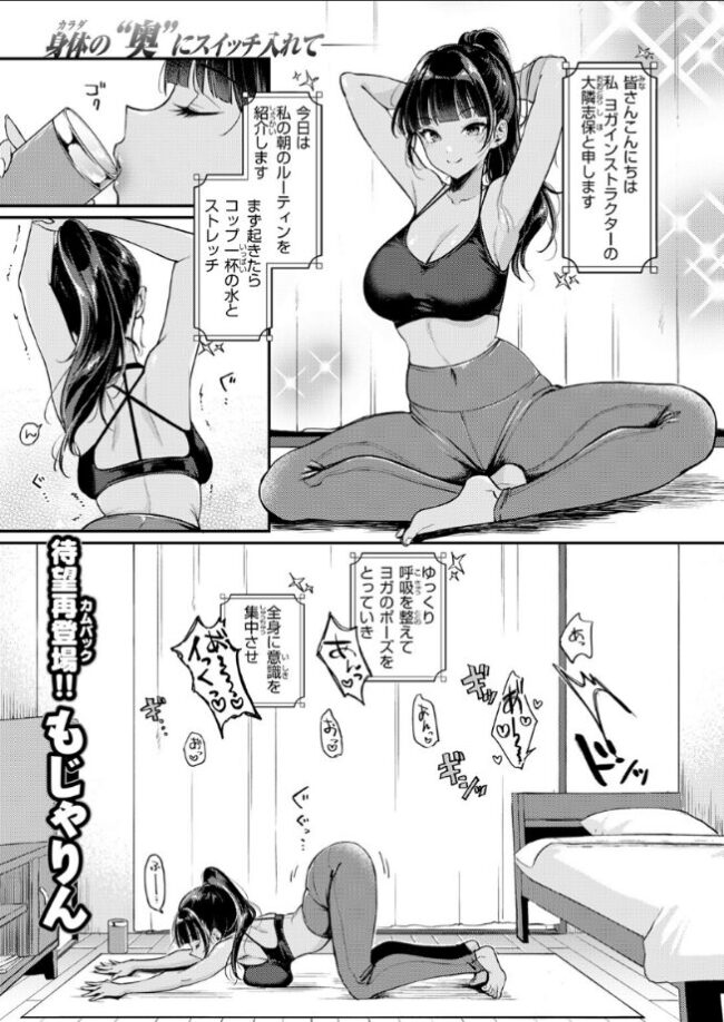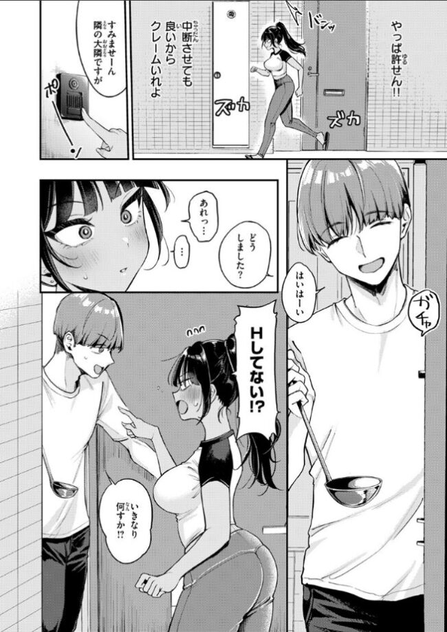 ヨガインストラクターの志保(しほ)は、隣人のセックスの喘ぎ声に悩まされていた。こっちは別れたばっかで欲求不満!! 喘ぎ声に乗せられムカムカにムラムラが募ってオナニーしちゃう日々……。四六時中、喘ぎ声が止まらない隣人に、今日こそ文句を言ってやると意気込んで尋ねると実はカップルではなく、1人のヤリちん君が代わる代わる女のコを連れ込んでいると判明!!それ以来、声が収まると思ったら顔見知りになったことをきっかけに何かと性事情を報告される仲に……。とはいえ……我慢の限界に達して文句を言いに行くと、今日は誰も呼んでいないからシていない!?こっちの勘違い……? まさか空耳…!? 確認の為に部屋に入ったはいいものの、ヤリちん君の流れに飲まれちゃって気付いたら脱がされちゃってて――