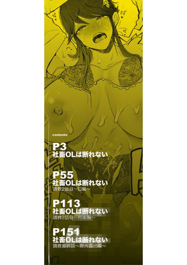 【内容紹介】アラサーで、処女社畜で、ドMこんな私を好きになんてなれないよね…池田あみは、処女でコミュ障+社畜のアラサーOLだ。ある日家の近くの公園で一人でいると、近所に住むヤリチン少年・奏多に声をかけられる。あみは気安くスキンシップをしてくる奏多に押され、負けるたびに言うことを聞かなければならないゲームをする事に…。体を弄られて次第に発情していくあみだったが、嫌じゃない自分がそこにいる事に気付く……!!その後も奏多との不思議な付き合いは続き、首輪と開口器を使ったお口の調教、誰も居ないビルの屋上での野外セックス等々…調教は続くのだが、ある日突然奏多の方から関係の終わりを告げられるのだった。アラサー女と少年の不思議な主従関係の行きつく先は。本当の私は、私が一番知らない。【収録作品】1 社畜OLは断れない2 社畜OLは断れない 調教2話目〜口編〜3 社畜OLは断れない 調教3話目〜拘束編〜4 社畜OLは断れない 調教最終話〜野外露出編〜【特典】メッセージペーパー(215P)【配信限定特典】未公開表紙ラフ(216P〜219P)表紙下描き(220P、221P)表紙線画(222P)【FANZA限定配信特典】表紙原画(223P)