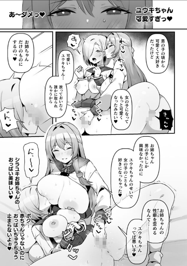 女の子になったなら、あんなこともこんなことも合法だよね…!【収録作品】『雌が二人を分かつまで…』漫画:織衣紡蓮「TS症候群」により女の子の身体になってしまったユウキは、メイクなどの基礎知識を教わるために幼馴染のお姉ちゃんであるシラユキの自室にお呼ばれされていた。レクチャーが終わった夜のはじめ頃、自宅に帰ろうとするユウキを見たシラユキの態度が一変…。普段穏やかで優しいお姉ちゃんに押し倒されたユウキは、熱いキスをされたのちに手錠で拘束されてしまう。乳首でゆっくりと女の子の快感を教えられたユウキは、愛液で溢れた自身の陰部を姿見で見せられながら絶頂に誘われる。才色兼備で優等生な幼馴染が見せる重たい愛の行く末は――。『ガチャ転生したら女体化スキルで、レズパーティに誘われた件』漫画:夏嶋めも異世界転生して女体化スキルを与えられたビッチィは、自身の役に立たないスキルと不名誉な名前に悩んでいた。そんなところに現れたのが女性3人組パーティのレオナ、シーフ、トリスだった。特に行く当てもなく困り果てていたビッチィは彼女らのパーティに誘われたので同行することにしたのだが…。転生して元男であることを打ち明けていたビッチィは、真偽を確かめるためだと言うレオナに胸を揉まれながら陰部を刺激され、意味も分からぬ間に絶頂を迎えてしまう。続けざまにシーフのスキルで愛撫され、トリスの触手スキルで前後の処女を喪失したビッチィは本人も自覚していなかった最強の隠しスキルを発動して…!?はずれスキルだと思っていた女体化スキルで最高の絶頂をその手に!『百合ロリ魔女のTS調教大魔術』漫画:あましょく全生物を女の子にする野望を持つ合法ロリ魔女エリーン。そんな彼女を師匠として慕っているのが、見た目がかわいい獣人っ子…のオスだった。エリーンは彼がメスだと思って助けたのだが、懐かれた上に弟子入りまでされて辟易としていた。しかしある日、失敗したと思っていた秘薬の影響を受けた弟子は爆乳ムチムチメス獣人になっていて…!?そんな弟子を味見するべく手足を縛りおっぱいに顔をうずめながら陰部を責める百合魔女は、一方的な愛撫をして悦に浸っていたのだが…。自身の魅力がないと思っていた部分を好きだと言われたエリーンは照れてしまい戦意喪失。そうして一方的な愛撫は終焉を迎えるも、今後は弟子からの激しい求愛が始まって…!?『僕は女の子じゃないから!』漫画:ナポパス貴族の四男であるセシルは家を継ぐことができないので自身で生きる道を探そうとしていた――。しかしある日、目が覚めると女の子になっていて…!?御付のメイドであるセラとノエルに事情を話したのだが、どうやらセラのテンションがいつもよりかなり高い。そして、ノエルが持ってきた着替えは何故かスケスケで…?彼女らは主人が女の子になったことを心から楽しんでいるようで、ご奉仕がしたい様子。メイド2人にされるがままの主人は陰部を舐められながらキスをされ簡単に絶頂を迎える。メイドたちに具合わせと顔面騎乗位をされながらも必死にベロを出してお返しをする主人だが、女の子の快感は想像以上で!?表紙:noukatu・中本ひょうり・水瀬くうる(彩色)