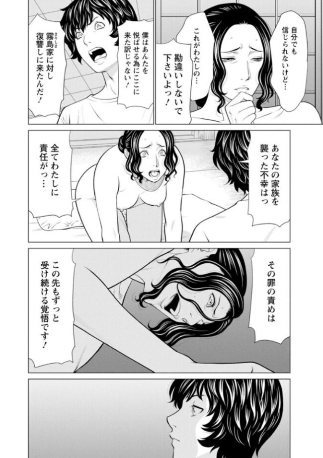 過去の因果により、娘の婚約者・尊から性的凌●を受け、耐え続ける霧島雪絵。いつしかその責め苦に快楽を感じ始めるようになるが…悪魔的青年の思惑通り霧島家の人間が全員破滅に向かっていく中、二人の関係には思いがけない転機が訪れて…注目のハードピカレスクエロス、ついに完結!! 番外編2話も収録!!