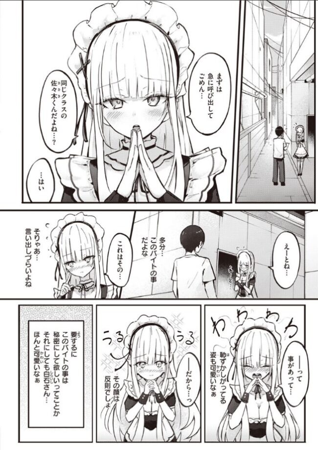 「えっちなことしたら…言わないでくれる……?」学力トップでクラス1の美少女・白石凪(しらいしなぎ)。そんな彼女に恋する同じクラスのメガネ男子・佐々木(ささき)は、白石さんがこっそりメイドカフェで働いていることを知ってしまう。秘密にして欲しい白石さんは、佐々木の肉棒を唐突にご奉仕し始め、そのまま彼女の可愛いおクチに口内射精!白石さんと続きをヤることを約束して、バイト後の彼女とラブホに直行……♪憧れの女のコと≪ひみつ≫を共有しあう、ハートのドキドキ止まらないイチャラブセックスがここに!キュートなヒロインを描くことに定評のある、新進気鋭が『COMICゼロス』で堂々デビュー!!