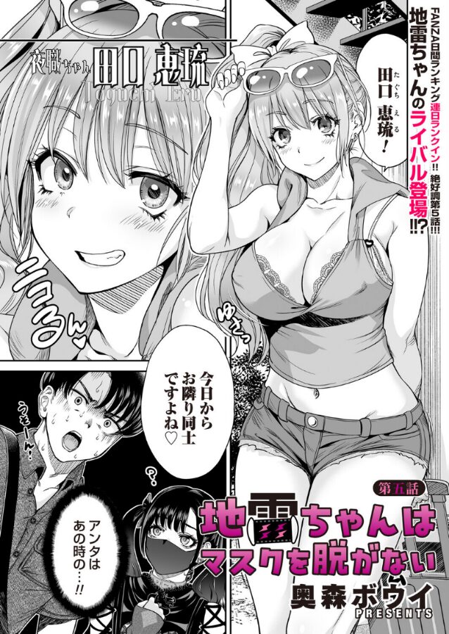 素顔は絶対NG!だからマスクも絶対外しません!!たとえ彼氏に知られたくなかった秘密がバレていても…女子大生・八空円(やそら・まどか)と付き合う条件、それは『決して素顔を見てはいけない』。彼氏の井ノ上和也(いのうえ・かずや)は周囲の心配をよそに、色んな一面をさらけ出す円の沼にハマっていく。円は超巨大企業グループのご令嬢!?そのことに和也が触れた途端、円は憤怒の表情で睨みつける。和也をラブホテルに置き去りにしてそのまま帰宅…かと思ったら、朝起きると不機嫌な顔で戻ってきてくれた。しかし自宅に帰宅した瞬間、大学の学生課から不穏な電話がかかる。盗撮されていた音符川(ねぶかわ)との不同意性交の動画が、和也の退学&逮捕に発展するほどの大問題になっており!?人生を揺るがす大事件、学生部長と刑事に詰められながらも思い出すのは円との出会い。そして初めてのSEX&アクメで…。紙&電子書店を席巻したモンスター級超大人気ヒット作『俺得修学旅行』の奥森ボウイが描く、人気大爆発中の連載第9話!!!