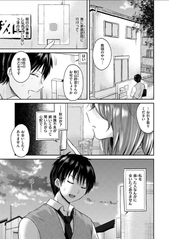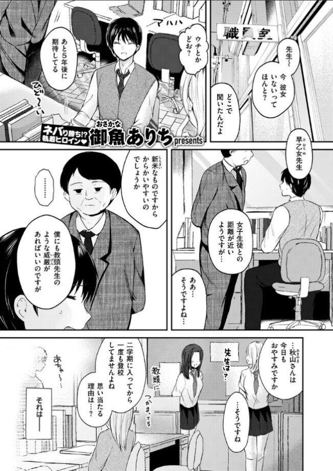 「先生のおチ○ポでいっぱい突いて下さい!!」ストレス発散として、繁華街で立ちんぼしていると同じ学校の杉本(すぎもと)と宮田(みやた)にバレてしまった女教師の菊池(きくち)。次の日、2人に呼び出された菊池は口止めすることを条件に制服を着て、ご奉仕することになってしまった。ボイスレコーダーを準備して証拠を録ろうとするも、欲求不満な身体は自分からおねだりするようになっちゃって……。