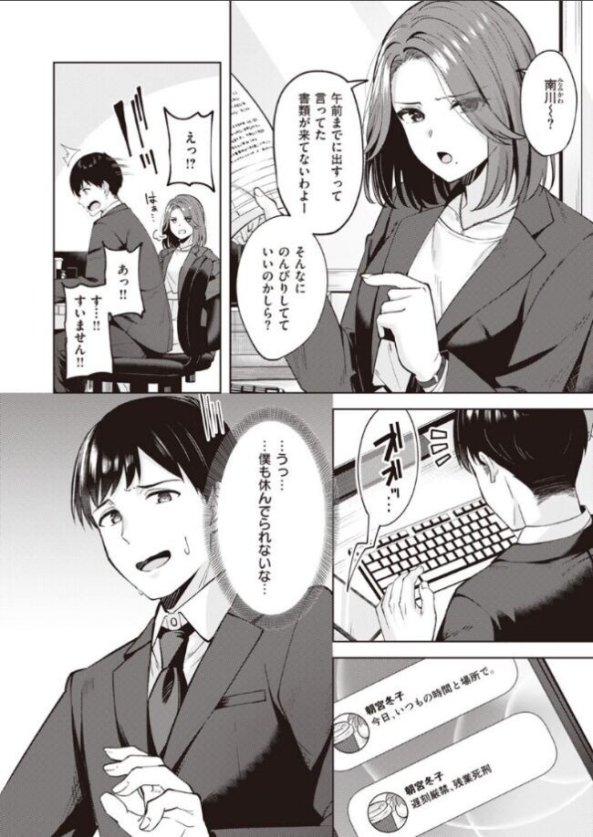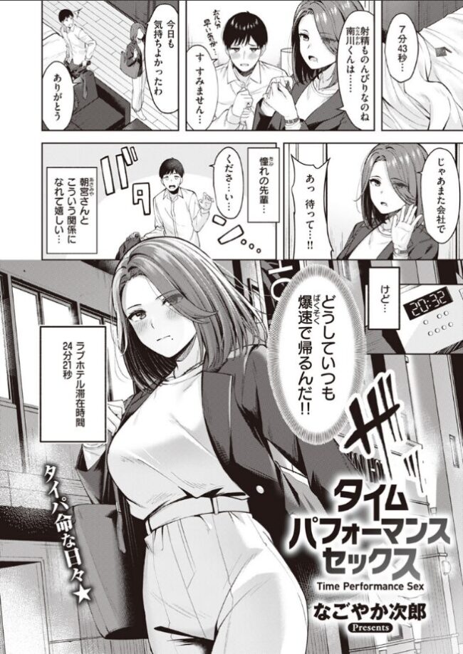 「時間とか…いいから…もっと…して…? 」エッチもタイパ重視!?会社の憧れの先輩、美人OLの朝宮(あさみや)のセフレである南川(みなみかわ)。常に時間に追われる朝宮のことをもっと知りたい南川は、ある日時間をかけてエッチすることを提案して……。1回じゃ終わらない!! 目隠しプレイでじっくりSEX!!