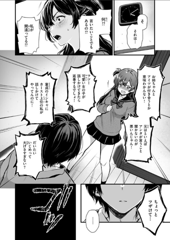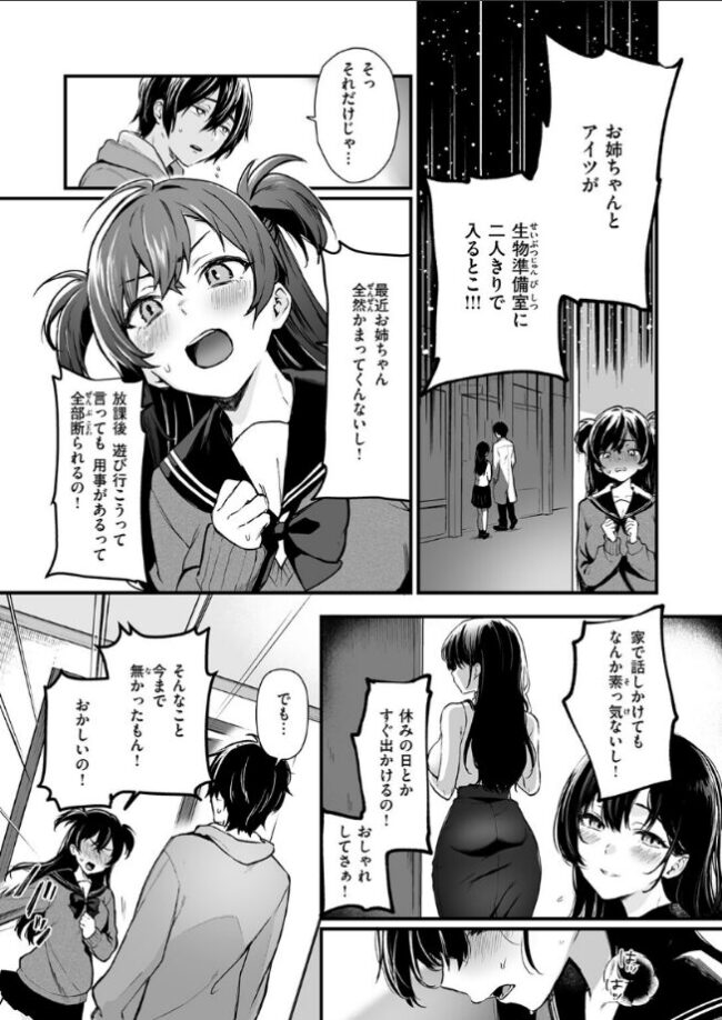 (お前みたいなゴミにっ…何時間触られてもっ…ンッ…なんも…気持ちよくないんだよっ…)大好きなお姉ちゃんが、キッモいおじ教師と肉体関係に……。学校では優等生、家庭では姉を溺愛する可愛い妹の優花(ゆうか)。彼女には気に食わない教師の息子(同級生)をイジメていたという裏の顔があった。そしてその教師が、息子への行為の復讐として、姉を脅していたのである。教師のことを詰問する為、ふたりが暮らす家へと押しかけた優花。留守の父親。オドオドする息子を激詰めしていると、彼の態度は豹変。実はとっくに、すべてを知っていた…そればかりか、映像を日々楽しんでいたという。「というわけで…今日は僕の童貞卒業記念!!!!」絶対に負けないはずの妹は……負けてしまうのか!!?