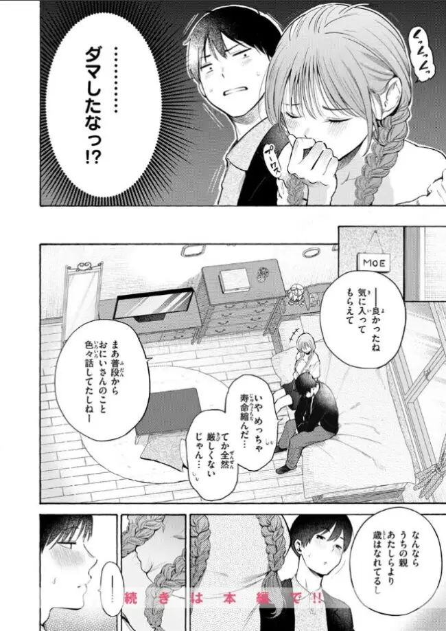 「…エッチしたいときの顔してる」通勤中に仲良くなった制服姿の女のコ・もえちゃん。彼女の実家に訪問することになり、めちゃめちゃ緊張してたけど、なんかあっさり受け入れてもらえた!?緊張もほどけ、もえちゃんの部屋で2人きり。親御さんが下にいるにもかかわらず、「口でしたげる」なんてもえちゃんが言い出して……。