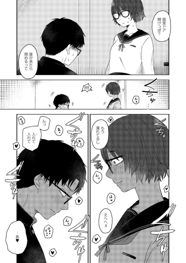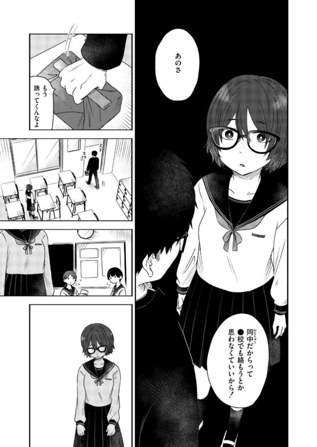 ぼっち男子×同中陰キャ女子思春期真っただ中、気持ちの裏返しが爆発?鶴岡は友達が一人もいない、ぼっち。昼休みには学校のトイレで一人寂しく弁当を食べている。しかし実は、同中の陰キャ女子、縁野から一緒に弁当を食べようと毎日誘われては…いるのだ。友達がいない自分のことを気にかける縁野のやさしさに触れつつも、思春期特有の気難しさで真逆の反応が炸裂する!「同中だからって●校でも絡もうと思わなくていいから!」セリフを吐き捨てトイレへと向かう鶴岡。しかし縁野は男子トイレまでついてきてしまう。「うぜーな、ストーカーかよっ!?」女子に心配されることがたまらなく恥ずかしい彼は、心にも思っていないことを口走ってしまう。そのとき突然、陽キャカップルがトイレに入ってきて隣の個室でおっぱじめてしまう!反射的に個室トイレで身を隠していた二人だが、隣では激しい喘ぎ声とピストン。超絶気まずい雰囲気になり…?