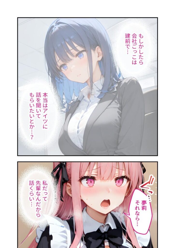 「ちょっと夢莉、聞いてる?」「…ほぇ?」夢莉のやつ、最近うわのそらね「夢莉、アンタ何か…」「先輩〜今夜お店来てください〜」「文化祭のツーショット、バラまいちゃいますよ?」なんだ気のせいか…でもカフェでスーツを着て会社ごっこなんて…「お疲れさまです、先生♪」本当はアイツに話を聞いてもらいたいとか…?夢莉、私だって先輩なんだから、話くらい…コミック48P+おまけイラストページ3P収録!【注意事項】※本作品のシチュエーションは全てフィクションです。登場する人物や設定等は、すべて架空のものとなります。※この作品内に登場するキャラクターは全員20歳以上です。※本作品はAIによる生成画像を使用して制作しております。※犯罪、その他違法行為を美化または助長する意図はございません。
