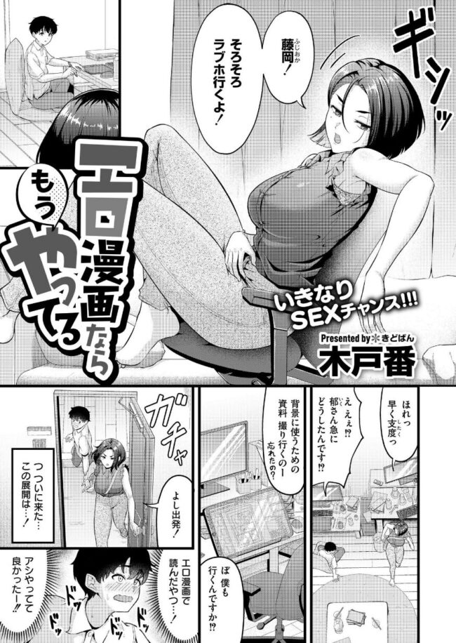 「セックスさせてくれよぉ!!」女エロ漫画家・郁のアシスタントをしている藤岡は、郁から突然ラブホに誘われる。取材目的らしいが、エロ漫画家とラブホに行くのはエロ漫画ならセックスのパターン!!!セックスの予感に胸をときめかせた藤岡だったが……。取材はつつがなく終了!藤岡、セックスできず!!!仕事場で頭を抱えていると、突然、郁に押し倒される。セックスの予感、再び……「この体勢、資料ないと描きづらくてねー」無心で写真を撮る郁。藤岡、再びセックスできず!!!!!『エロ漫画家』だからといって簡単にセックスできないのである!どうする、藤岡!?