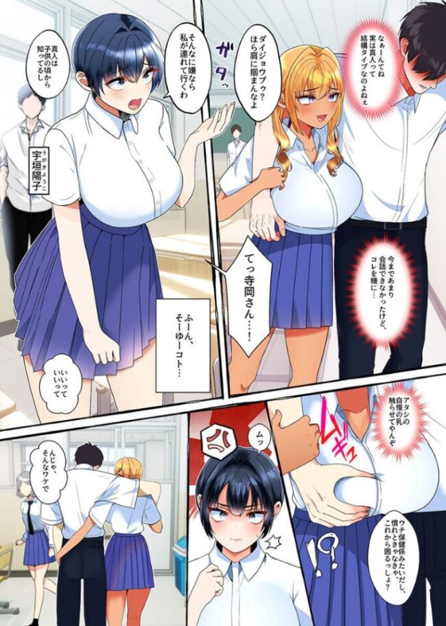 長年片思いをしている女子、陽子の気を引くために媚薬ネックレスを購入した主人公、真人。これで付き合えたらなぁ…なんて期待していたが、早々にネックレスの力が暴走して授業中に意識を失ってしまう。クラスの巨乳ギャル、ミサトに保健室へと運ばれたのだが…。保健室は誰も居ない状況となり、ミサトは媚薬ネックレスの影響を受けて発情状態になってしまう。目を覚ました真人の眼前には下着越しのムレッムレおま○こがあった。童貞の真人はギャルのムチッムチした肉感ボディに興奮して即フル勃起。ミサトはそんな真人をいじわるく見つめながらお仕置きとして手コキや足コキで責め立てる。だが射精寸前になったところで寸止めされてしまう。布団の中に潜り込みパイズリフ○ラでグッポグッポ咥えられてたら、心配した陽子が様子を見にやって来てしまう。そのままギャルと幼馴染によるち○ぽ争奪ハーレムプレイが始まってしまった。・媚薬ネックレスを手に入れたら授業中に力が暴走して意識を失ってしまう・クラスの巨乳褐色ギャル、ミサトから保健室に運ばれ、襲われちゃう・発情したミサトは真人を看病するフリして服を脱がせ、勃起ち〇ぽをナデナデ・フル勃起状態のソレをお仕置きと称して手コキ、足コキ、パイズリ、フ○ラで責めまくる・真人を心配した陽子が保健室へ現れると、ミサトは布団の中へ隠れてフ○ラし続ける・陽子も媚薬ネックレスで発情して自らおま○こを弄り出す・一本しかない真人のち○ぽを奪い合うようにミサトが騎乗位生ハメ・挿入れたもののナカでどんどん大きくなるソレに即潮吹き絶頂・ミサトへの嫉妬心を丸出しの陽子に生ハメ・念願の陽子の処女穴をバチュンバチュン突いて突いて突きまくる・処女穴に童貞ち○ぽで初生出し。発情したビッチ女子たちに跨られてとことん搾り取られたい女性優位プレイが好きな方におすすめです。フルカラーコミック