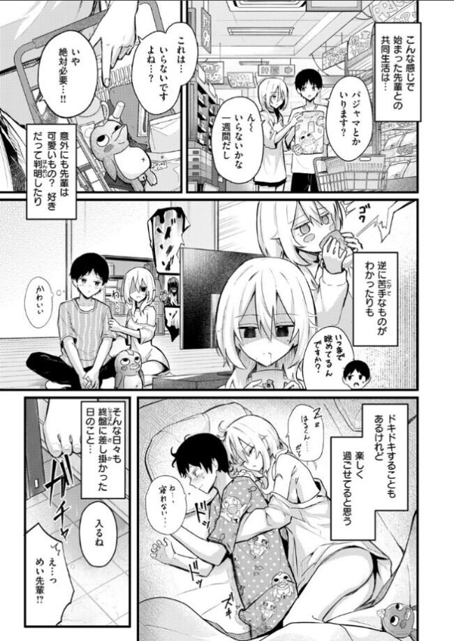 「私としたい…とか思うの?」隣に住むめい先輩が鍵をなくしたらしく、僕の家に一週間泊まることになった。目の前で着替えられたり、密着して寝てきたり……無自覚に隙だらけな先輩に正直理性との戦いでドキドキすることは多いけど、楽しく過ごせてはいると思う。そんなある日、お礼がしたいからと言って先輩がお風呂に入ってきた。洗うといってち○こをいじられ、我慢できずに射精してしまうと――