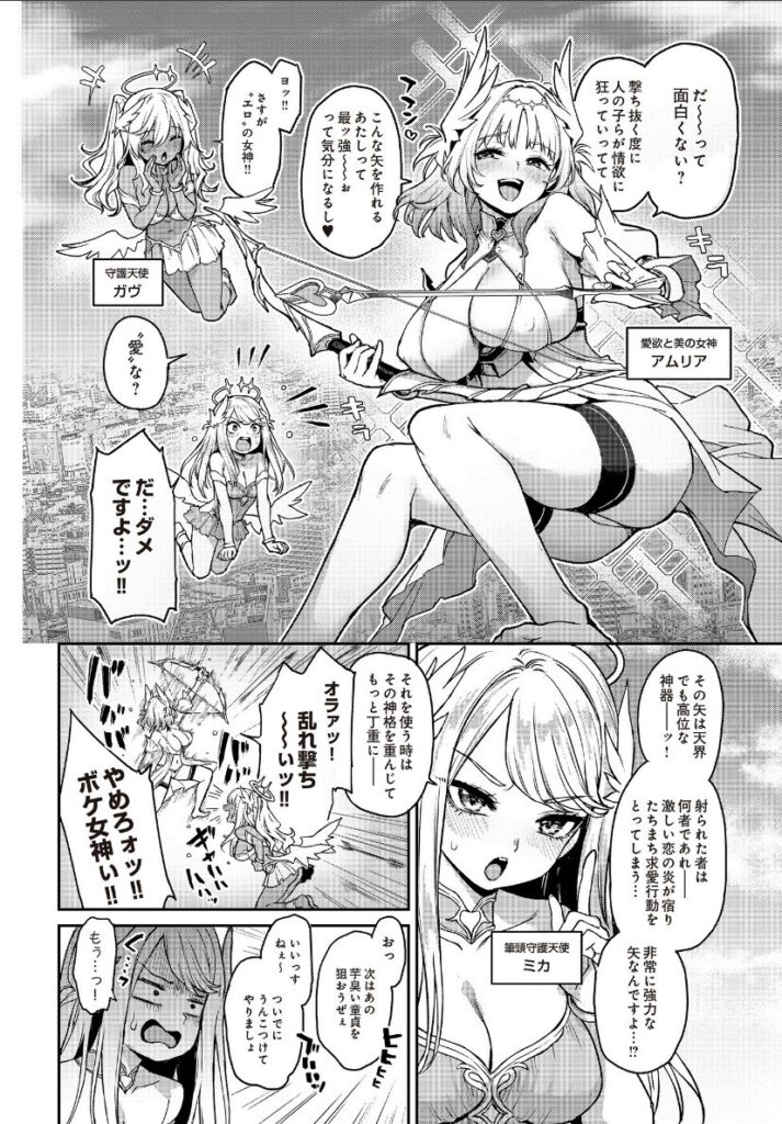 女神アムリアは悪戯にキューピッドの矢を射ち、人間が情欲に狂う様を楽しんでいたが芋童貞に狙いを定めたところ、バチが当たり自分に矢が当たってしまう自分の意思に反し童貞にアプローチする女神、童貞は見かけによらずの巨根の持ち主で…?自身のプライドにかけて負けないと意気込むが――!? ヘラクレスオオチ〇ポに翻弄される…!